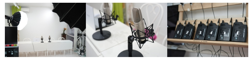 高輝度の撮影照明や、高性能マイク、人数が多い撮影などにも対応できるワイヤレスマイクなども各種取り揃え、どんな撮影にも対応できます。